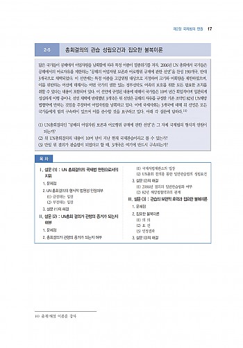 본서로 공부하시는 수험생께서는 우선 문제를 정확히 읽고 본인이 생각하는 목차를 구성해 보신 후 교재의 목차와 비교하여 개선해 가신다면, 국제법 사례문제를 대하는 실력이 발전됨을 느끼실 수 있을 것입니다.