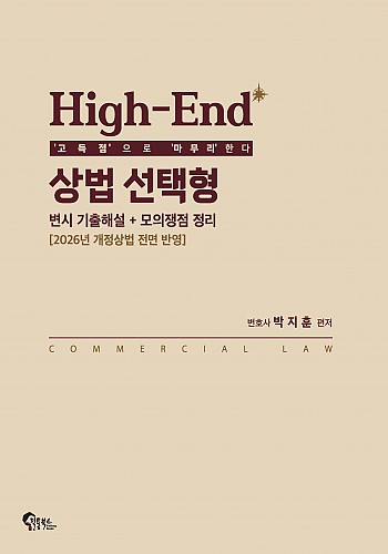 ‘High-End 상법 선택형’ 교재는 변호사시험 상법 선택형 시험을 가장 체계적이고 효율적으로 대비할 수 있도록 구성되어 있습니다. 작년 2025년부터 지난달 2026년 3월까지 상법이 수차례 개정을 거치면서 중요 조문이 변경 또는 신설되었고, 가장 최근에 개정된 2026. 3. 6. 개정 상법까지 전부 반영하여 해설을 하였습니다. 아울러, 개정 전 조문과 개정 후 조문을 함께 비교/정리하여 어느 부분이 개정되었는지를 정확하게 표시하여 출제 포인트까지 함께 정리하였습니다.